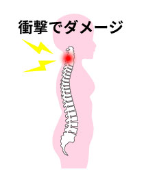 頚に不意に衝撃を受け、頸椎(頚の骨)周囲の筋肉や靱帯、神経や血管などの組織に損傷を受けたものです。